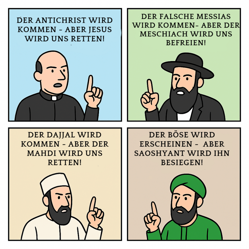 Der Koran fordert nicht, dass wir passiv warten. Er fordert nicht, dass wir in Angst leben. Er ruft uns: Handelt! Seid Helfer Allahs! (61:14) Jede Geschichte von einem Retter, der alles richtet, jede Warnung vor einem Betrüger, der uns täuschen soll, sind menschliche Konstrukte - politische, psychologische oder soziale Werkzeuge. Sie geben ein falsches Gefühl von Sicherheit, während sie von der eigentlichen Verantwortung ablenken.